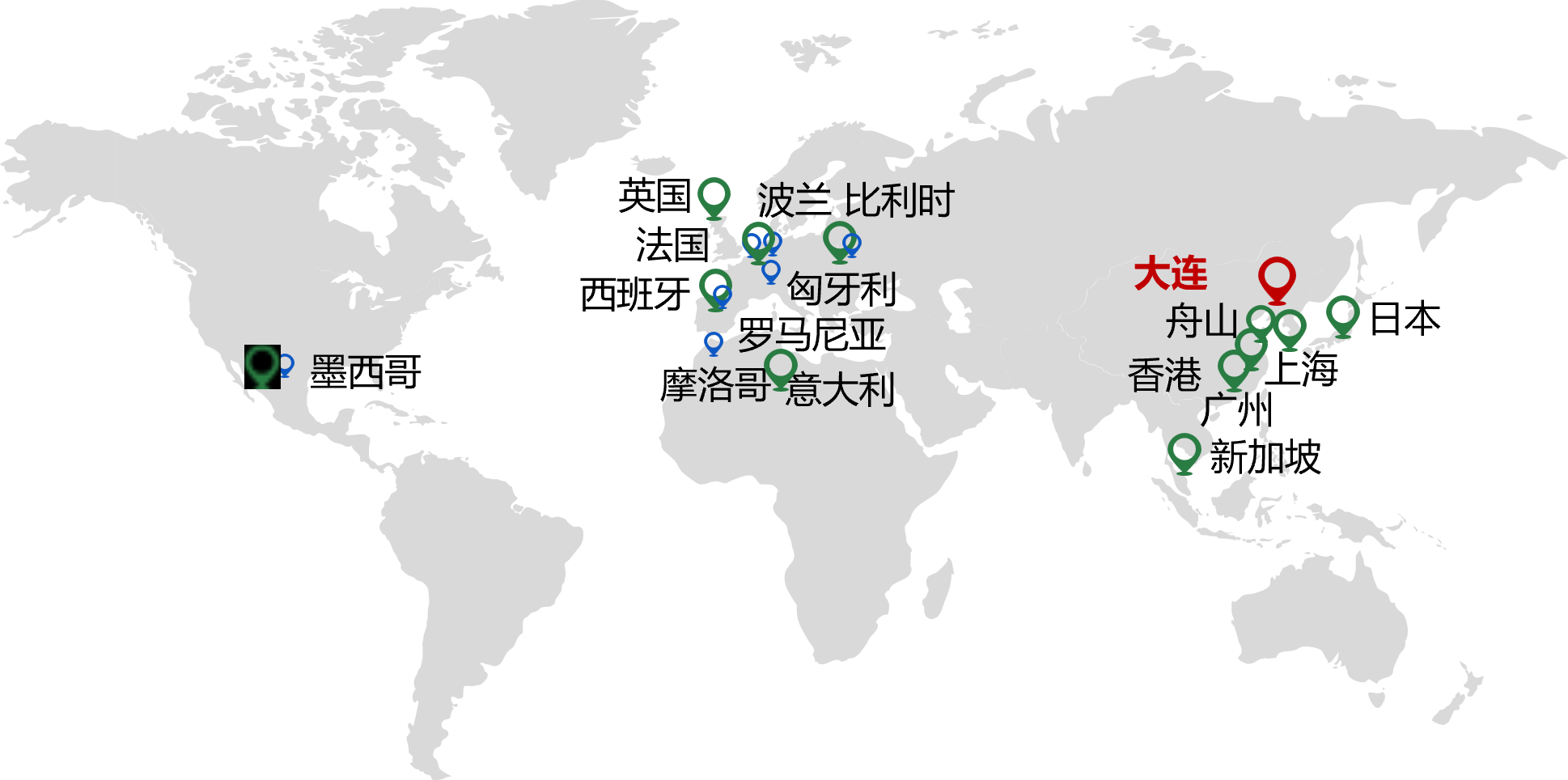分公司:上海、舟山、广州、宁波、香港、新加坡、西班牙、匈牙利、波兰、罗马尼亚、法国、英国、日本、意大利、摩洛哥、墨西哥、比利时、英国